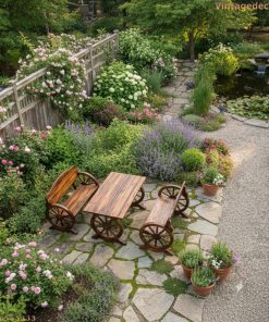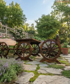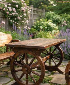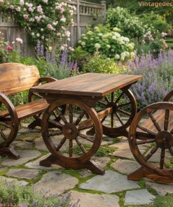 Bàn ghế gỗ G5 kiểu bánh xe – điểm nhấn vintage cho sân vườn