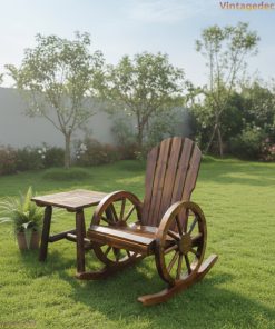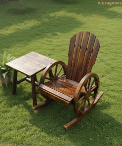 Bàn ghế gỗ G7 – Ghế bập bênh bánh xe cho góc sân vườn thư giãn