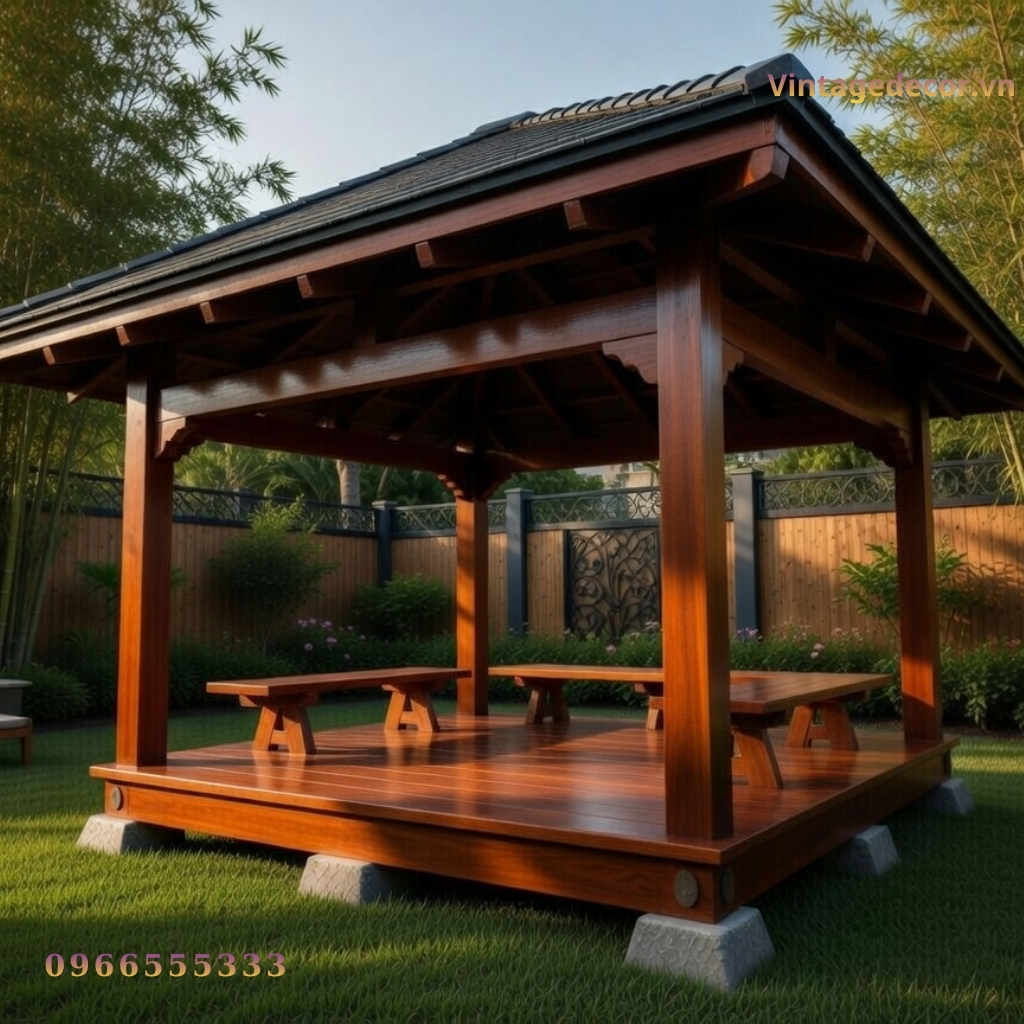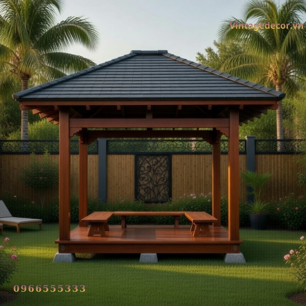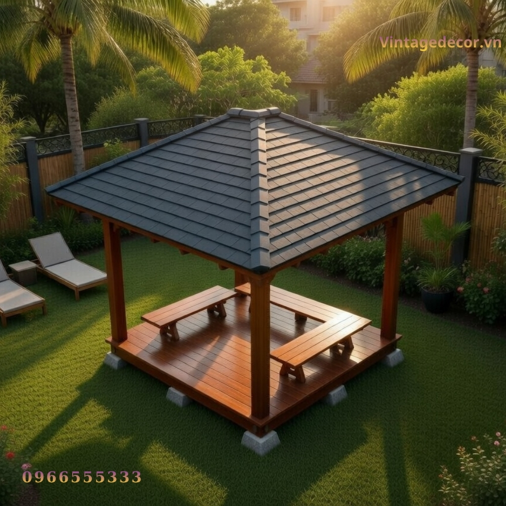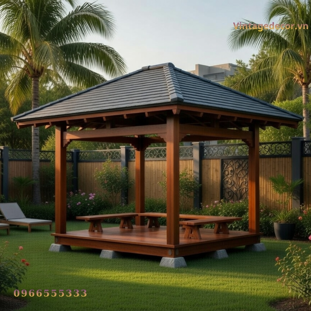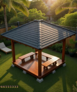 Trong xu hướng thiết kế cảnh quan hiện đại, việc sở hữu một không gian thư giãn ngoài trời không chỉ dừng lại ở sự tiện nghi mà còn là khẳng định gu thẩm mỹ tinh tế của gia chủ. Chòi gỗ sân vườn T51 từ thương hiệu Vintage Decor là sự giao thoa hoàn mỹ giữa nét mộc mạc của gỗ thông tự nhiên và sự thanh thoát của kiến trúc mái Nhật, mang đến một “ốc đảo” tĩnh lặng ngay trong lòng khuôn viên biệt thự.