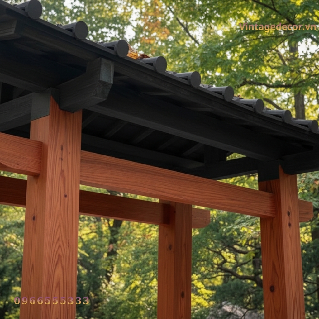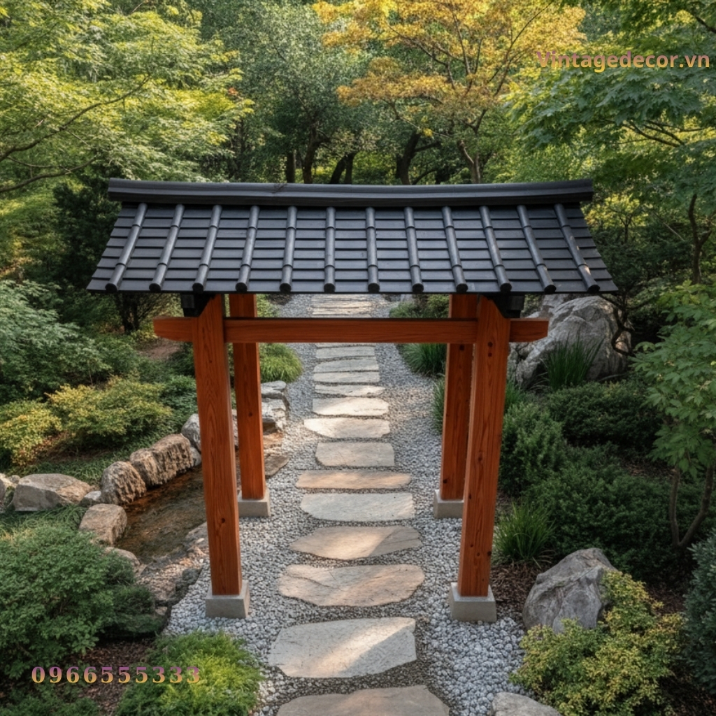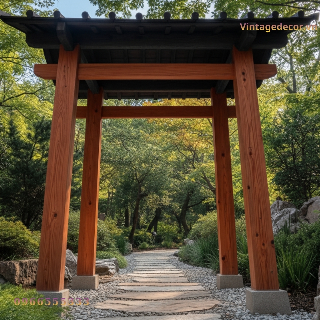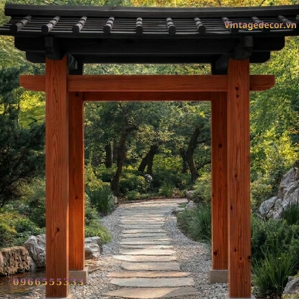 Trong nghệ thuật thiết kế cảnh quan, phong cách Nhật Bản luôn chiếm một vị trí trang trọng nhờ sự tĩnh lặng, tinh tế và gần gũi với thiên nhiên. Điểm nhấn quan trọng nhất để mở đầu cho một không gian sống đậm chất “Thiền” chính là chiếc cổng. Vintage Decor tự hào giới thiệu mẫu Cổng gỗ Nhật Bản CJP6 – sự kết hợp hoàn hảo giữa chất liệu gỗ thông tự nhiên và kỹ thuật chế tác thủ công tinh xảo.