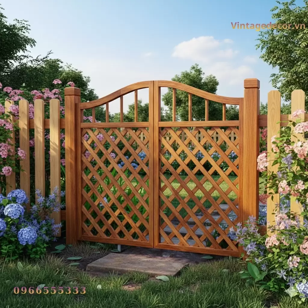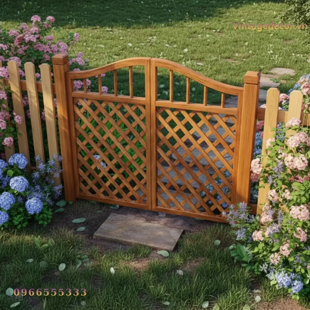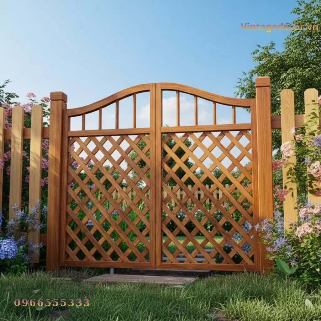 Cổng Gỗ Sân Vườn C13 – Chất Liệu Gỗ Thông Tự Nhiên