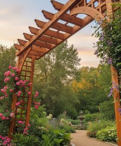 Nếu bạn đang tìm một mẫu cổng gỗ sân vườn vừa đẹp, vừa bền, lại tạo được điểm nhấn hoa leo cho lối đi, hãy cân nhắc ngay cổng gỗ sân vườn C2 của VintageDecor.
