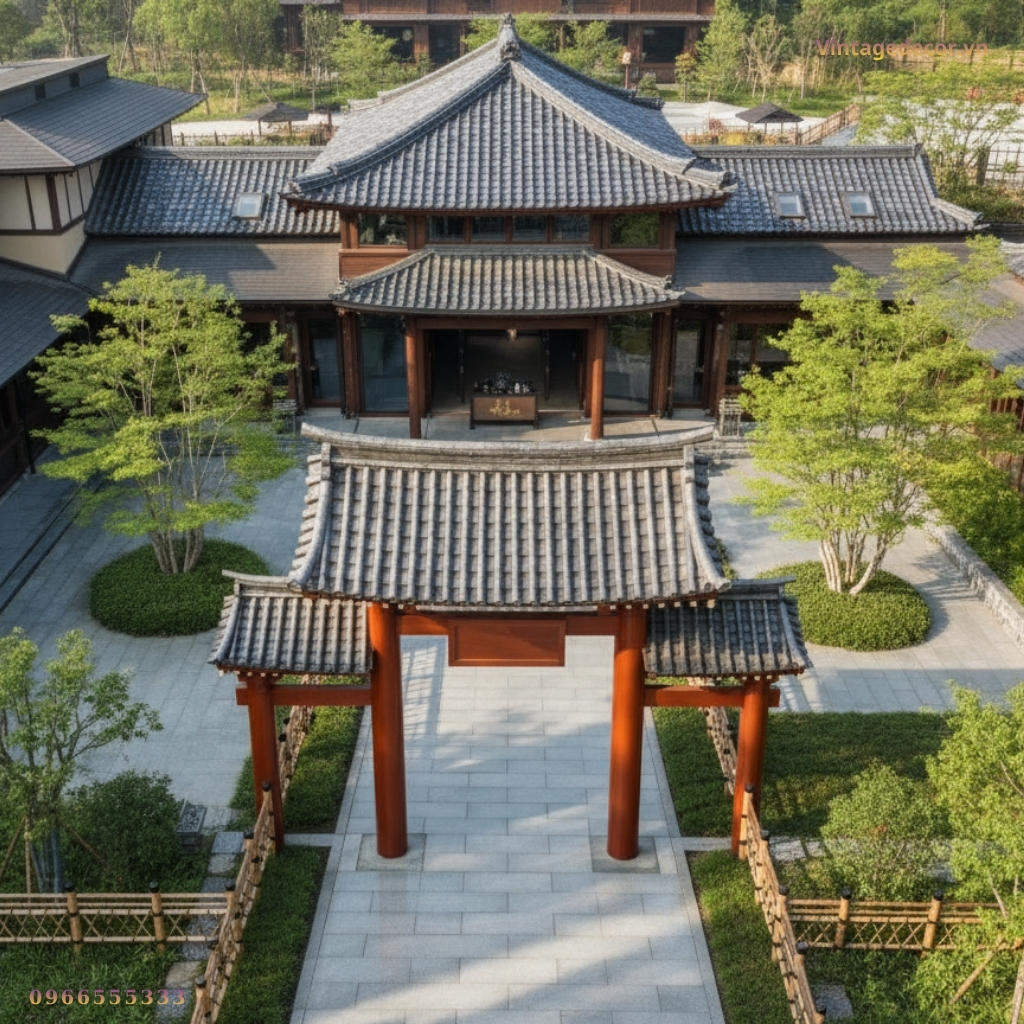 Với thiết kế mái che lợp ngói âm dương xám trầm kết hợp cùng hệ trụ cột vững chãi, sản phẩm này đặc biệt phù hợp với các khu biệt thự sân vườn, resort cao cấp hoặc những ngôi nhà có diện tích ngoại thất rộng lớn. Nó tạo nên một sự chuyển giao mềm mại giữa thế giới ồn ào bên ngoài và không gian tĩnh lặng bên trong vườn nhà.