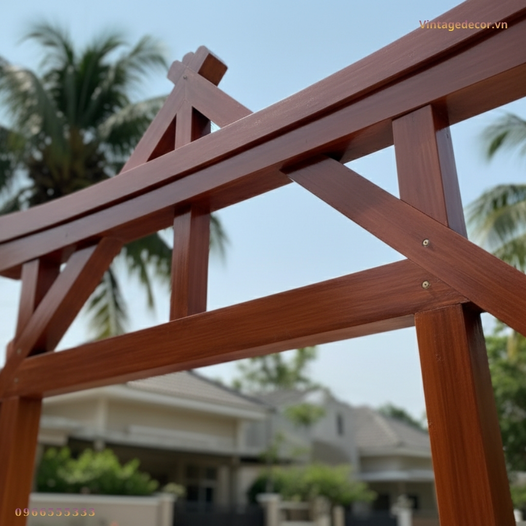 Chúng tôi không chỉ bán một chiếc cổng, chúng tôi mang đến một giải pháp kiến trúc bền vững. Mỗi sản phẩm cổng gỗ C36 đều được kiểm soát chất lượng từ khâu chọn gỗ đến khâu sơn hoàn thiện cuối cùng. Đội ngũ thợ lành nghề của Vintage Decor luôn chú trọng vào các chi tiết nhỏ nhất như mối ghép, góc vát để đảm bảo sản phẩm đạt đến độ hoàn hảo về mặt thị giác.