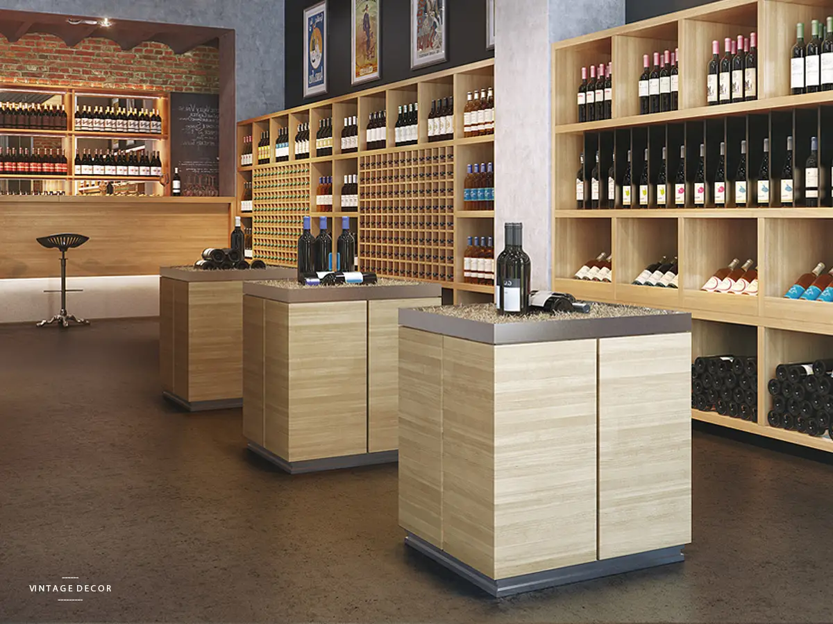 Khác với các thiết kế nhà hàng, quán bar rượu. Cửa hàng rượu bán lẻ sẽ không quá chú trọng vào những bộ bàn ghế hay quầy bar mà nó sẽ tập trung vào các hệ tủ, kệ tùy chỉnh nhằm tối đa hóa không gian lưu trữ cũng như trưng bày rượu của bạn.