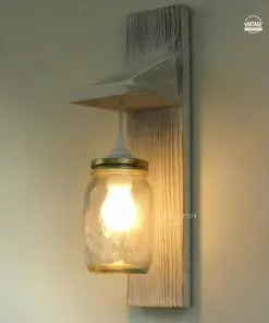 Đèn tường thủ công làm bằng gỗ đã qua xử lý tái chế được sơn và hoàn thiện đau khổ.