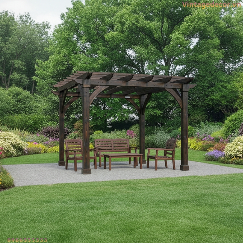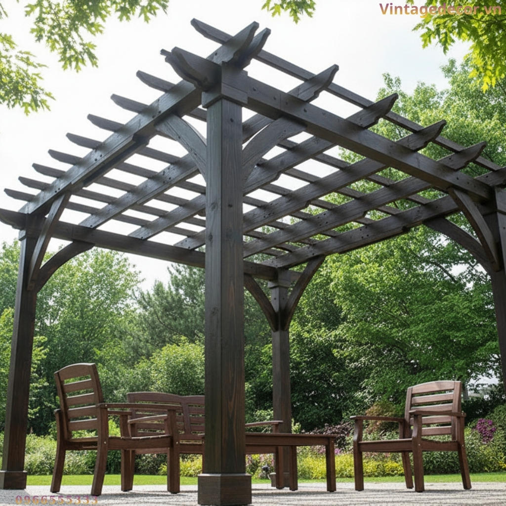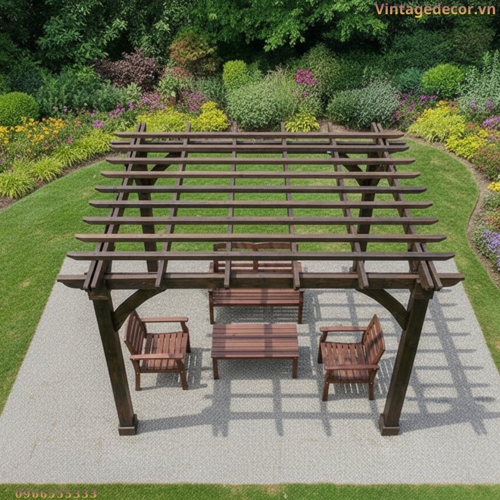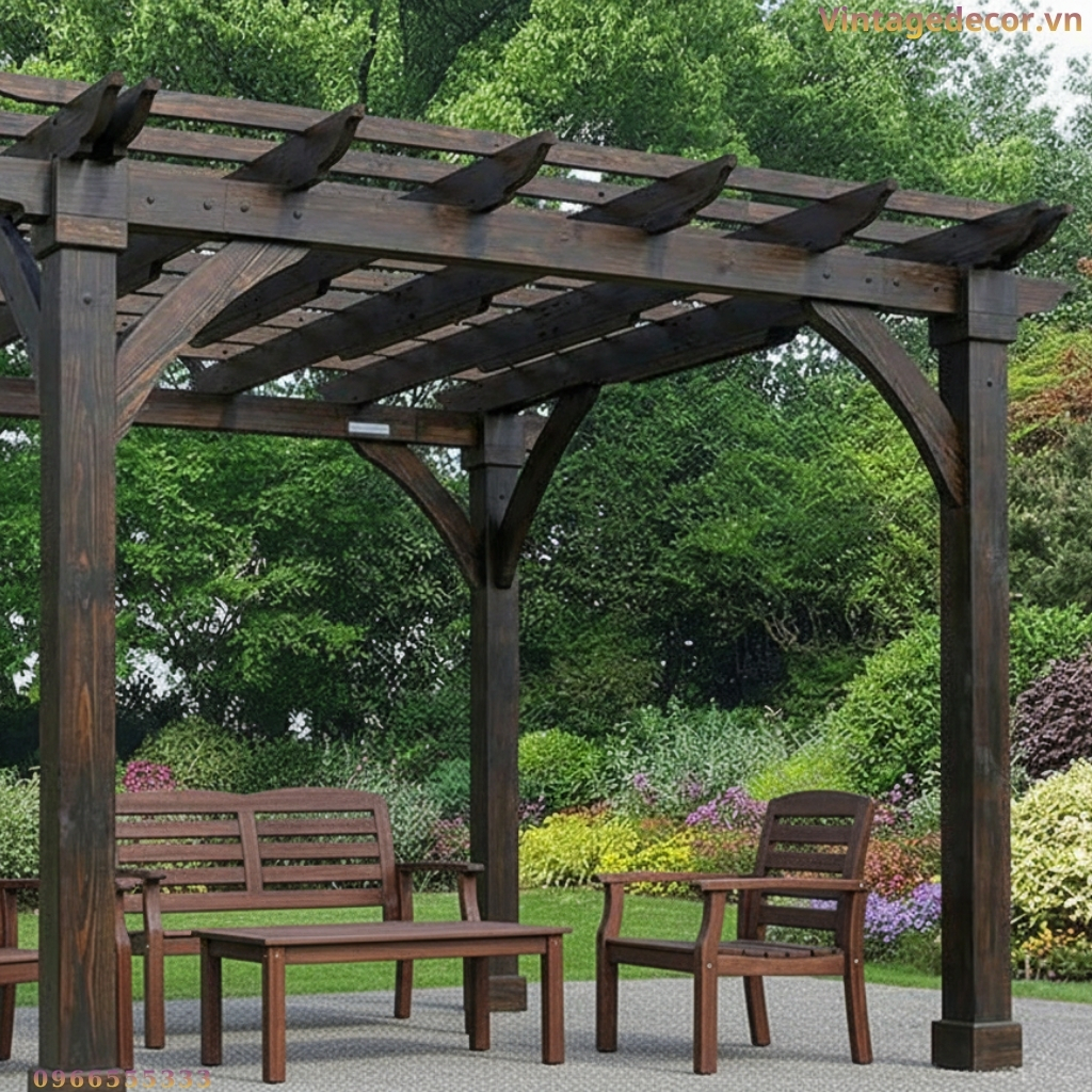 Giàn Hoa Gỗ Pergola P1 – Đẳng Cấp Không Gian Sân Vườn Vintage