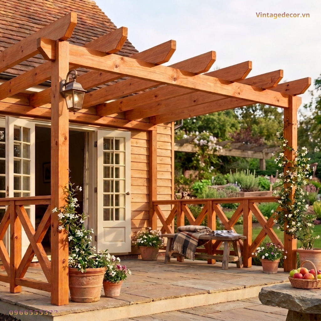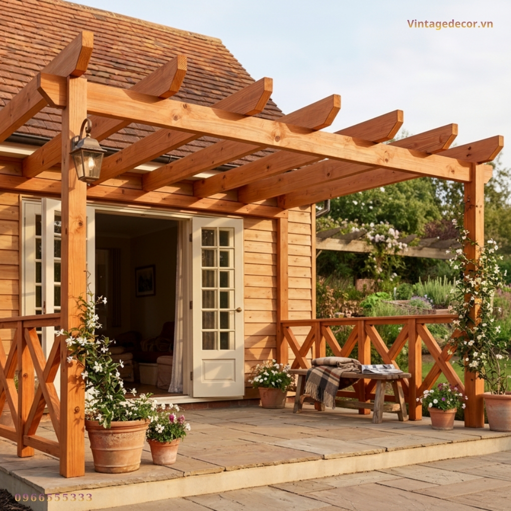 Sở hữu một khoảng hiên nhà ngập tràn ánh nắng, được che chắn bởi những thanh gỗ mộc mạc và điểm xuyết thêm những nhánh hoa leo rực rỡ là ước mơ của rất nhiều gia chủ. Thấu hiểu mong muốn kiến tạo một không gian sống “chữa lành” và gần gũi với thiên nhiên, Vintage Decor tự hào giới thiệu đến quý khách hàng mẫu Giàn hoa Pergola P22 – một tuyệt tác kiến trúc sân vườn được chế tác từ chất liệu gỗ thông cao cấp.