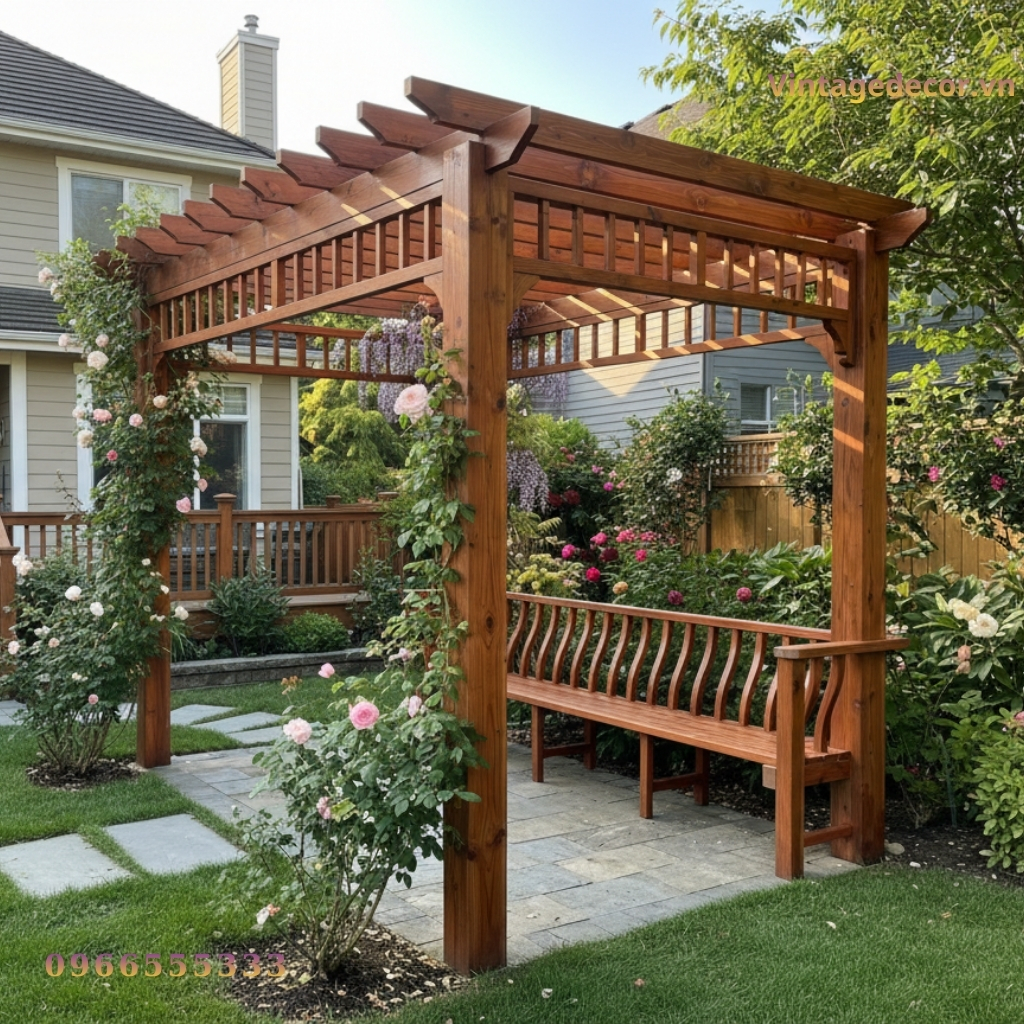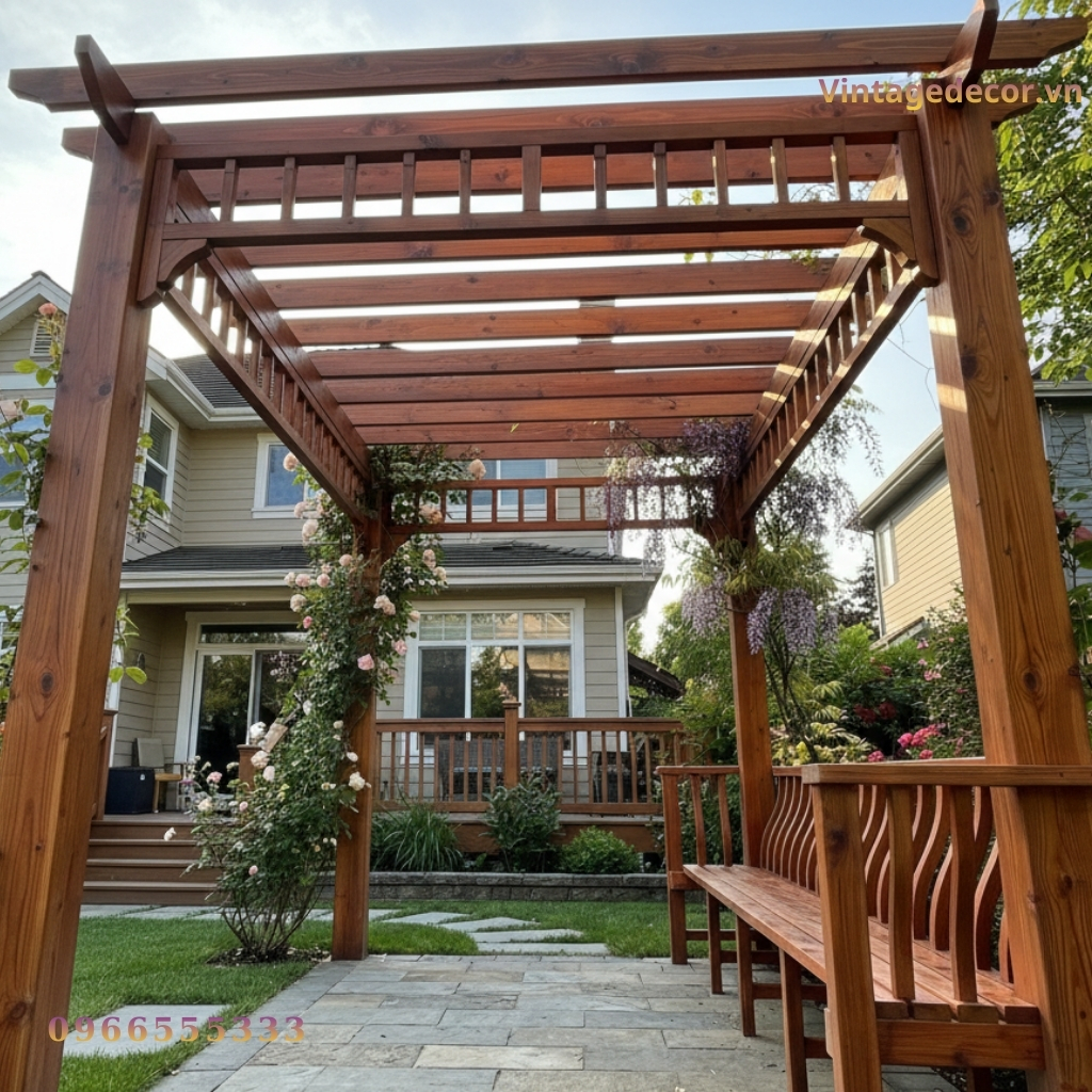 Giàn Hoa Pergola P5 Gỗ Thông Cao Cấp – Điểm Nhấn Sân Vườn Đẹp