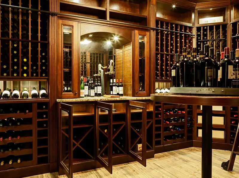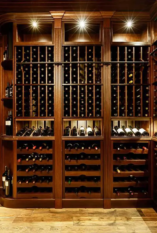 Chủ nhà này đã tạo ra một hầm rượu bằng gỗ Gụ tuyệt đẹp pha trộn với cả các thành phần Vigilant Custom và Premium. Tâm điểm của hầm rượu là một mái vòm bằng ván hạt tuyệt đẹp với tủ tùy chỉnh bao gồm cửa kính khung gỗ có khóa. Tủ gỗ nguyên khối chứa các thùng kim cương, kho lưu trữ số lượng lớn và giá đỡ đồ gia dụng bằng thủy tinh. Ngoài ra, căn hầm sử dụng các kệ kéo có viền bằng vỏ sò, kho lưu trữ magnum, màn hình dọc, đồ chơi và giá đỡ bậc thang. Mang lại cho hầm rượu này một cảm giác thanh lịch là phần đế cao hơn và các đường gờ hình vương miện và trang trí gấp nếp khắp phòng rượu. Để kiểm soát nhiệt độ, hầm rượu sử dụng hệ thống làm mát phân chia theo ống dẫn để tạo điều kiện tối ưu và giảm thiểu tiếng ồn trong phòng.