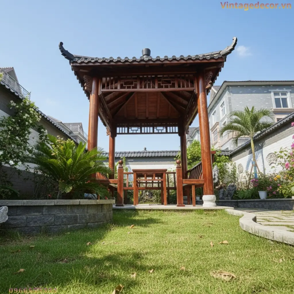 Trong xu hướng thiết kế cảnh quan hiện đại, nhà chòi sân vườn không chỉ là nơi che mưa nắng mà còn là “trái tim” của khu vườn, nơi gia chủ tìm về sự bình yên sau những bộn bề cuộc sống. Mẫu Nhà chòi T16 tại Vintage Decor với thiết kế đậm chất Á Đông, sử dụng gỗ nhập khẩu cao cấp, chính là điểm nhấn hoàn hảo nâng tầm đẳng cấp cho biệt thự của bạn.