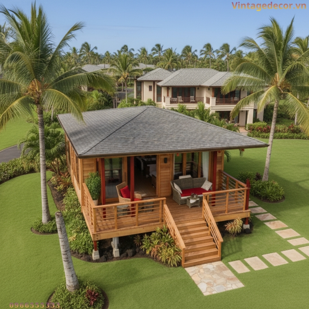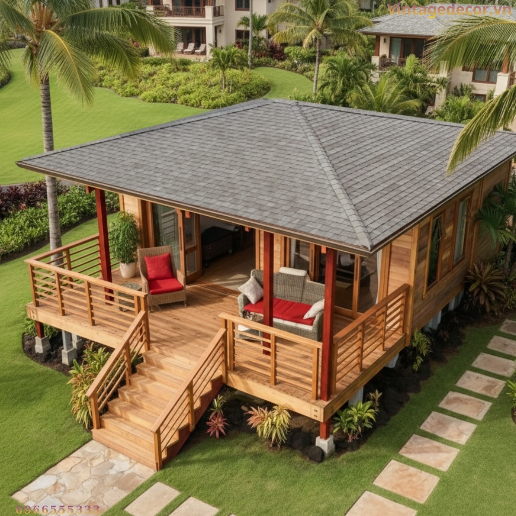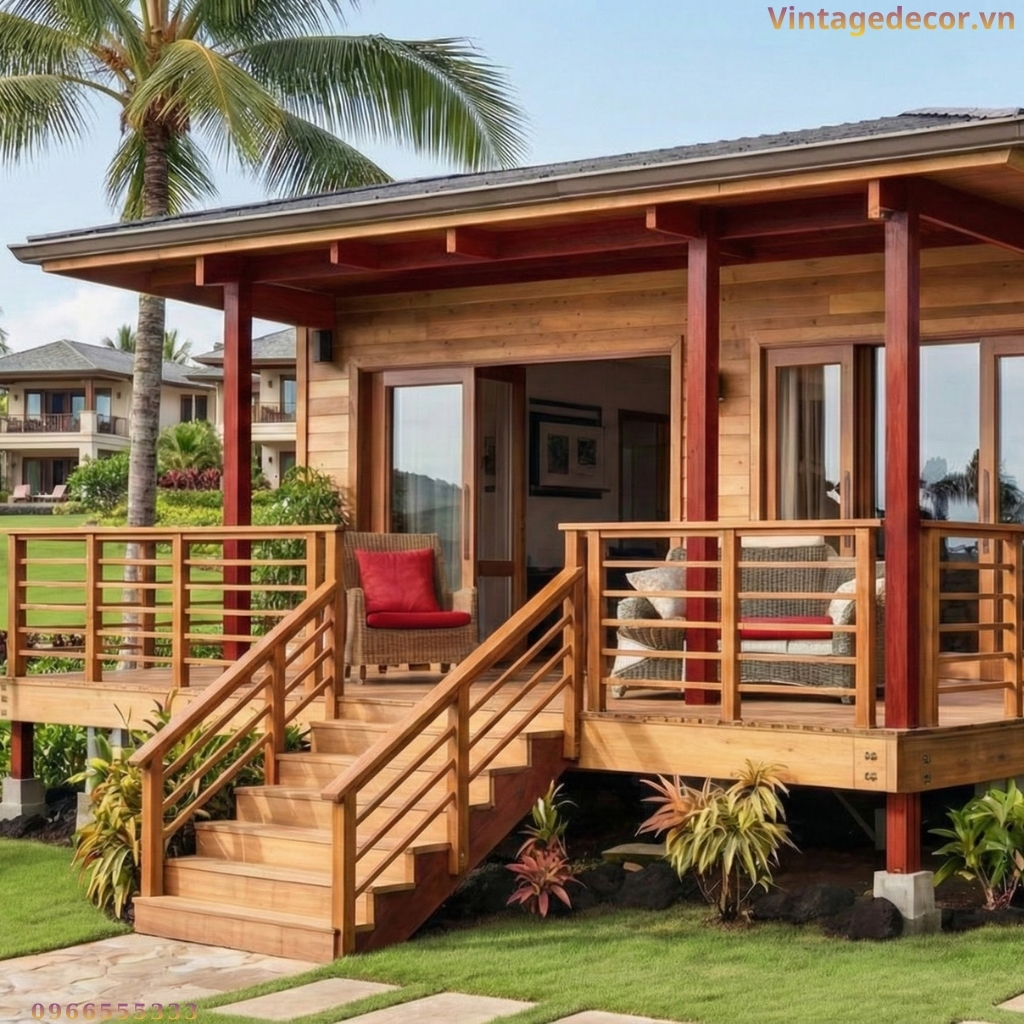 Trong xu hướng du lịch nghỉ dưỡng hiện nay, du khách ngày càng ưu ái những không gian xanh, mộc mạc nhưng không kém phần tiện nghi. Nắm bắt được nhu cầu đó, Vintage Decor xin giới thiệu mẫu Homestay S7 – một thiết kế nhà gỗ bungalow mang hơi thở nhiệt đới, điểm nhấn hoàn hảo cho bất kỳ khu resort hay farmstay nào.