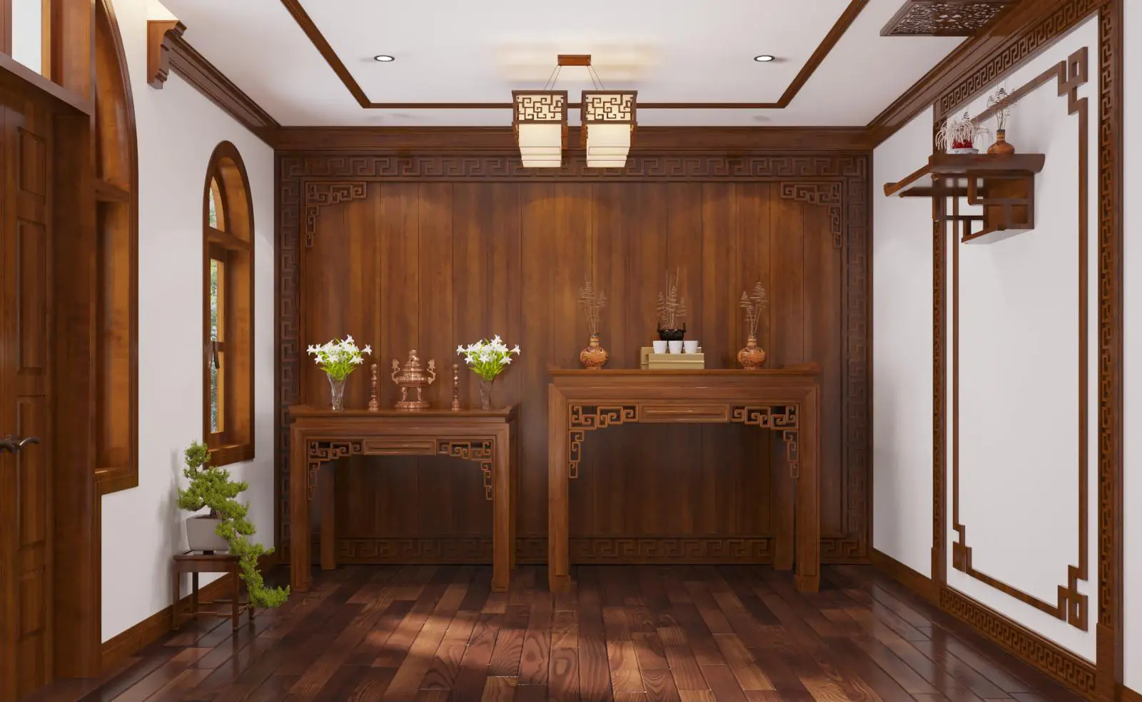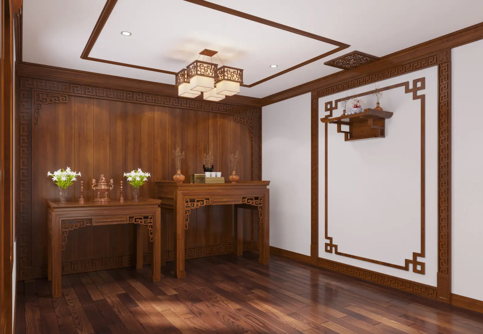 Đây là mẫu phòng thờ cao cấp được kết hợp giữ cổ điển và hiện đại tạo ra không gian ấm cúng và sang trọng giúp cho việc thờ cúng tổ tiên của nhà đình. Giúp cho gia đinh gặp nhiều may mắn tài lộc .