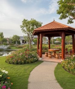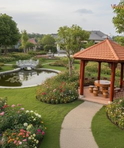Đồng bộ cảnh quan: cung cấp thêm cầu đá, ghế đá, đèn vườn, thảm cỏ, bồn hoa theo concept.
