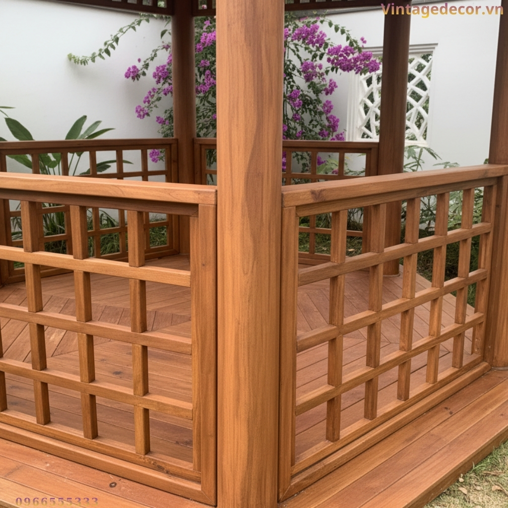 | Lan can | Thiết kế dạng ô vuông caro (lattice) thoáng mắt, tạo hiệu ứng ánh sáng đẹp. |