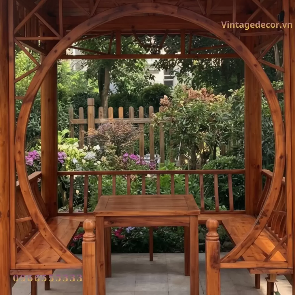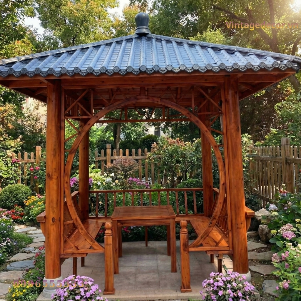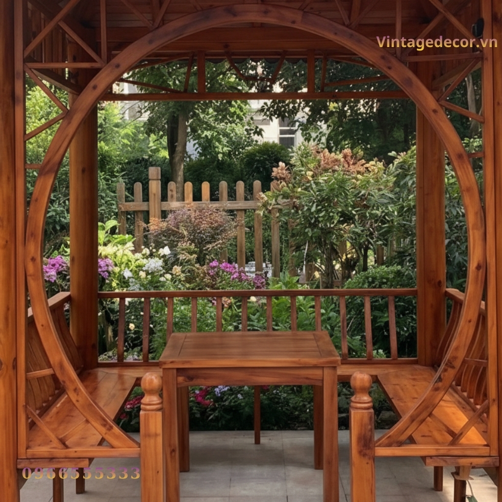 Trong xu hướng thiết kế cảnh quan hiện đại, nhà chòi gỗ sân vườn không chỉ đơn thuần là nơi che mưa, che nắng mà còn là điểm nhấn nghệ thuật, là “trái tim” của cả khu vườn. Vintage Decor xin giới thiệu mẫu Nhà chòi gỗ T29 – sự kết hợp hoàn hảo giữa vẻ đẹp mộc mạc của gỗ thông tự nhiên và phong cách thiết kế tinh tế, mang đến một không gian thư giãn lý tưởng ngay tại gia đình.