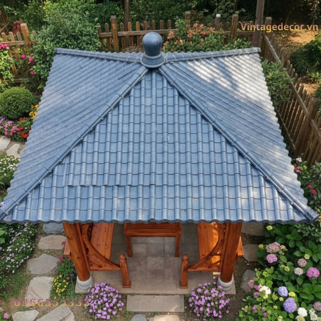 - Không gian mở: Thiết kế 4 mặt thoáng (hoặc lục giác tùy biến thể) giúp đón trọn vẹn gió trời và ánh sáng tự nhiên. Ngồi trong chòi T29, bạn có thể phóng tầm mắt ngắm nhìn toàn bộ khu vườn xinh đẹp của mình, tận hưởng không khí trong lành mà không bị giới hạn tầm nhìn.