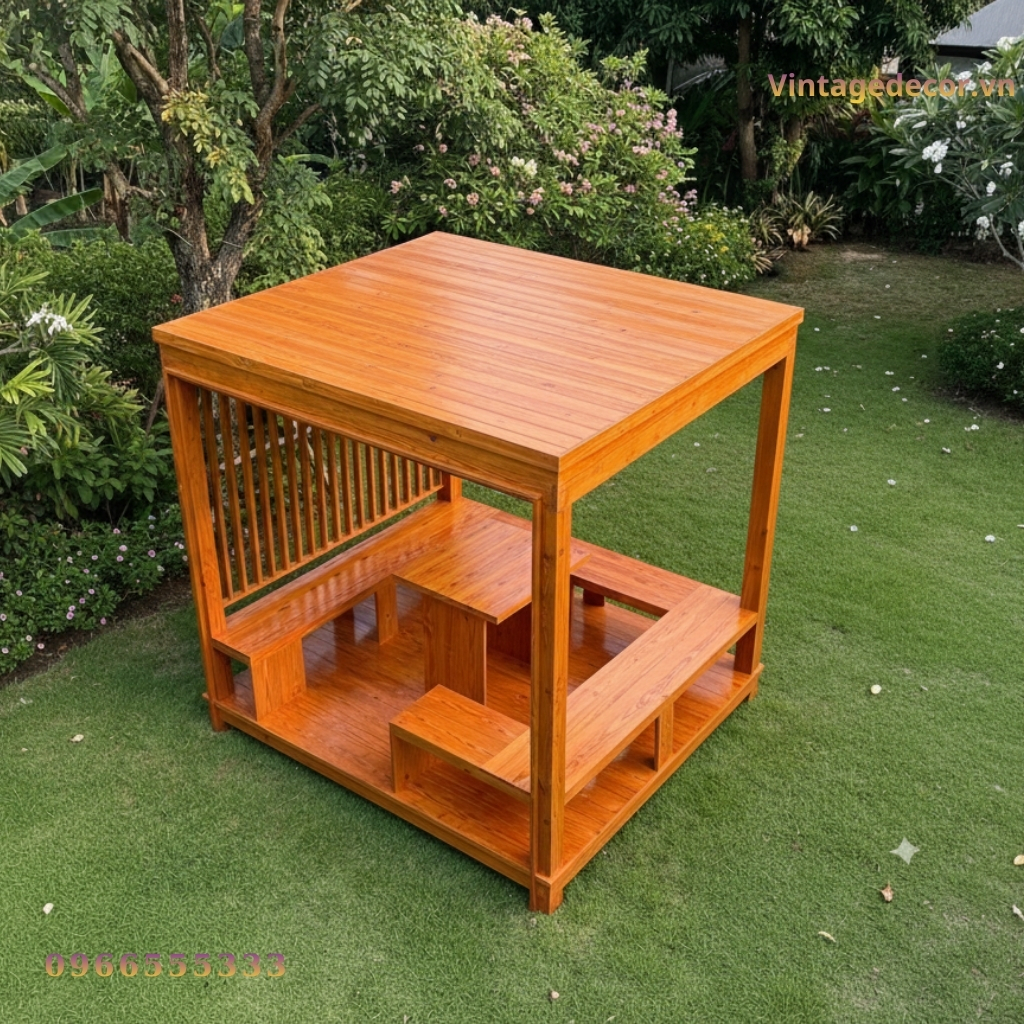 Trong xu hướng thiết kế cảnh quan sân vườn hiện đại, sự xuất hiện của một chiếc chòi nghỉ không chỉ đơn thuần là nơi dừng chân, tránh nắng mưa mà còn là “trái tim” của cả khu vườn. Nhà chòi gỗ T44 tại Vintage Decor, được chế tác từ chất liệu gỗ thông nhập khẩu cao cấp, chính là mảnh ghép hoàn hảo mang đến vẻ đẹp mộc mạc, bình yên nhưng đầy tinh tế cho không gian sống của bạn.