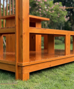 - Gia công tỉ mỉ: Từng thanh gỗ thông đều được bào nhẵn, bo cạnh sắc sảo và sơn phủ kỹ lưỡng trước khi lắp đặt.