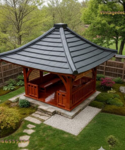 Với cấu trúc vững chãi, hệ mái cong nhẹ nhàng và gam màu gỗ ấm áp, sản phẩm này tạo nên một không gian thư giãn lý tưởng để thưởng trà, đọc sách hay sum họp gia đình sau những giờ làm việc căng thẳng.