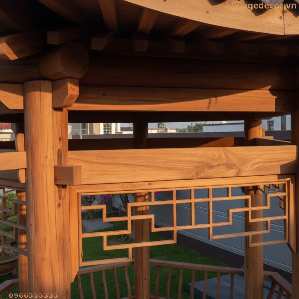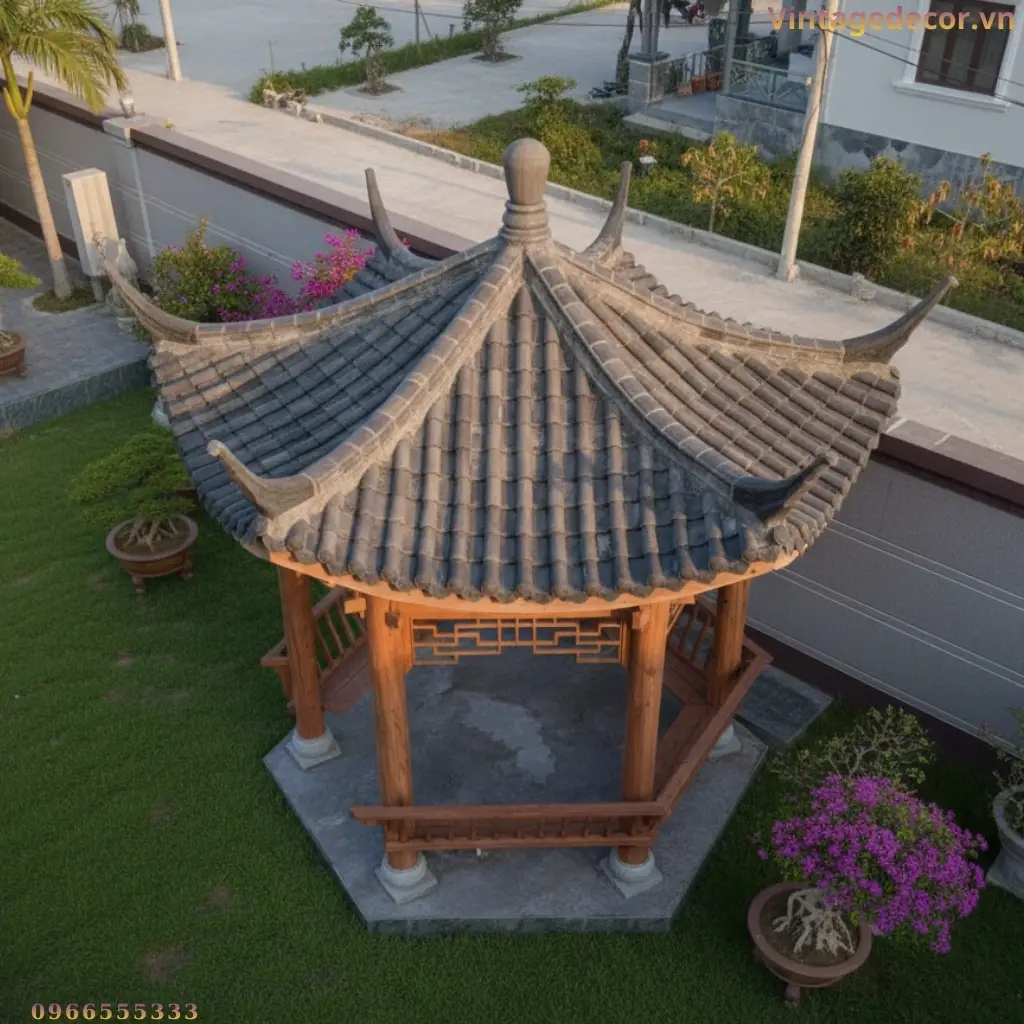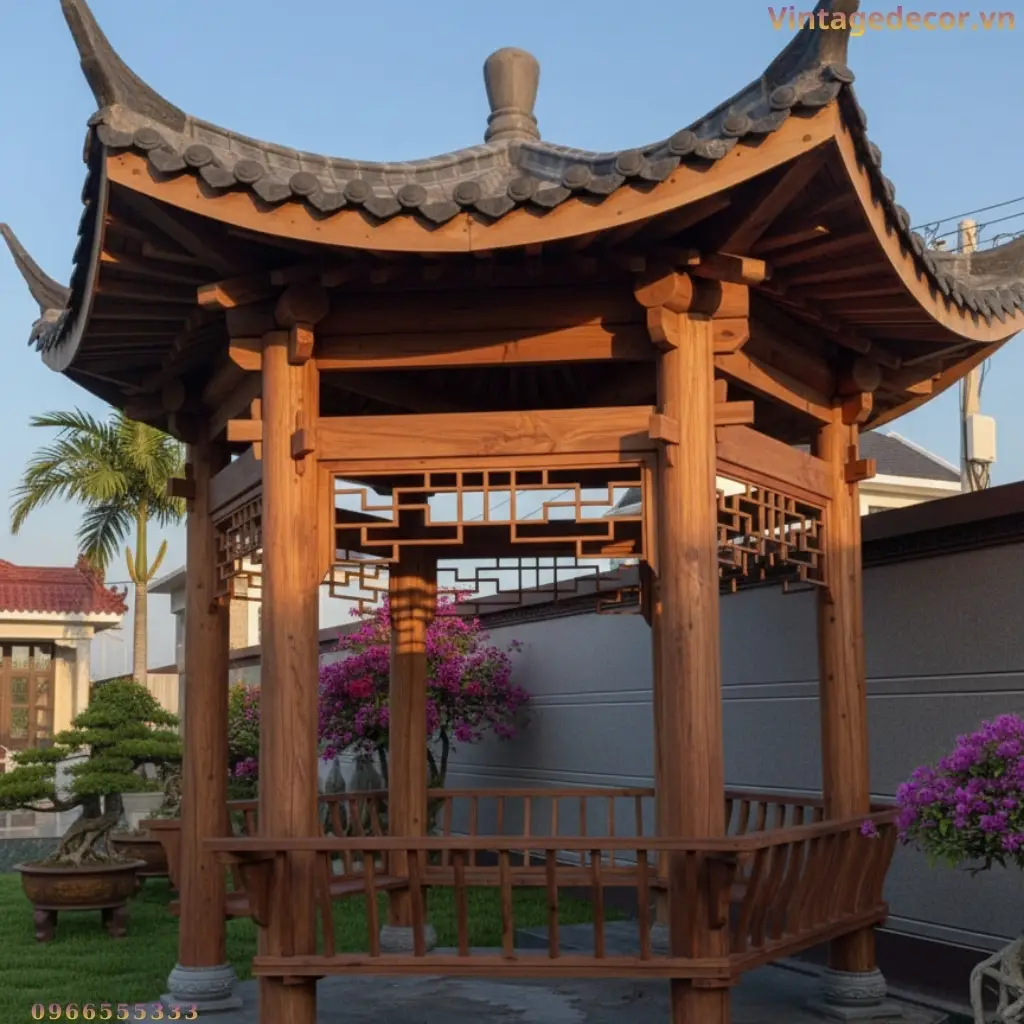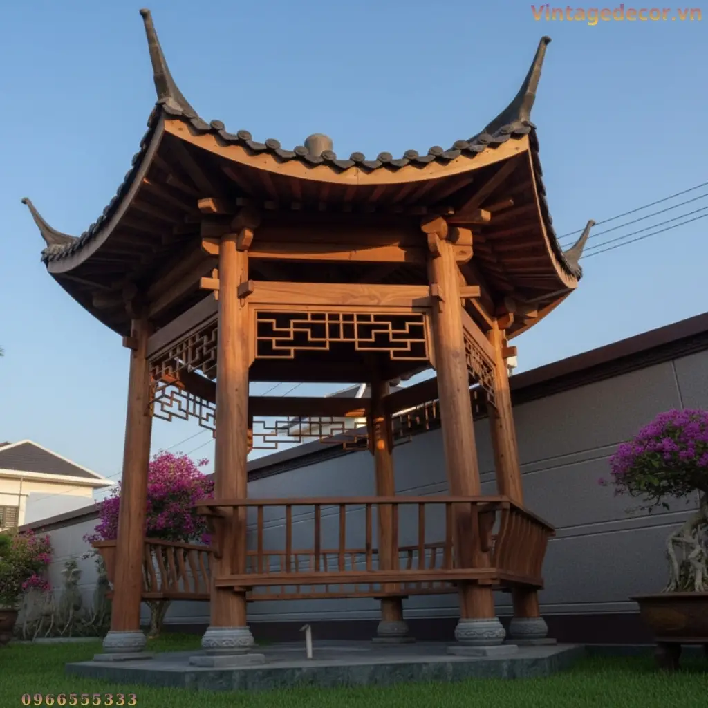 Nhà Chòi Lục Giác T12 Gỗ Tự Nhiên Mái Cong Đẹp