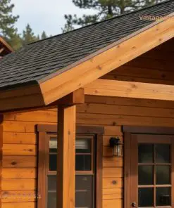 Điểm nhấn mạnh mẽ nhất của mẫu S18 chính là phần mái dốc chữ A truyền thống nhưng được xử lý kỹ thuật cao. Phần mái đua rộng ra phía trước không chỉ giúp che mưa nắng hiệu quả cho hiên nhà mà còn tạo nên tỉ lệ cân đối, giúp căn nhà trông cao ráo và thoáng đãng hơn. Hệ thống mái lợp (shingles) màu xám đen tương phản với màu gỗ, tạo nên vẻ đẹp sang trọng và bền bỉ theo thời gian.