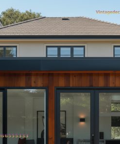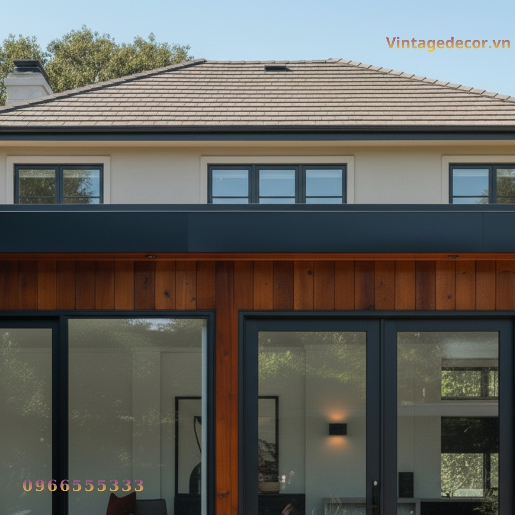 - Gỗ tự nhiên cao cấp: Toàn bộ phần ốp tường ngoại thất sử dụng gỗ đã qua xử lý công nghệ cao (biến tính), giúp chống mối mọt, cong vênh và chịu được sự khắc nghiệt của thời tiết nhiệt đới gió mùa. Màu gỗ nâu đỏ tự nhiên mang lại cảm giác ấm cúng và sang trọng.