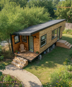 Thiết kế này không chỉ giúp thoát nước mưa nhanh chóng mà còn tạo ra một khoảng hiên rộng thoáng, nơi khách lưu trú có thể ngồi nhâm nhi tách cà phê sáng trên chiếc ghế bành gỗ, tận hưởng bầu không khí trong lành của sân vườn. Sự kết hợp giữa tông màu vàng ấm của gỗ thông và viền khung đen huyền bí tạo nên một diện mạo đầy cá tính, dễ dàng làm nổi bật bất kỳ không gian cảnh quan nào từ vùng cao nguyên đến ven biển.