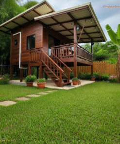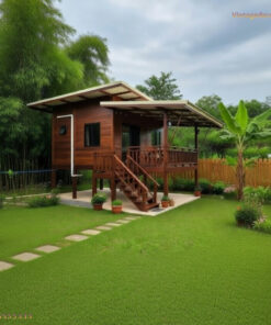 Sự kết hợp hoàn hảo giữa gam màu nâu trầm đặc trưng của gỗ tự nhiên và thiết kế mái dốc hiện đại mang lại vẻ ngoài thanh thoát. Đây không chỉ là nơi ở, mà còn là một điểm nhấn kiến trúc đầy kiêu hãnh cho các dự án homestay, resort hay khu vườn gia đình.