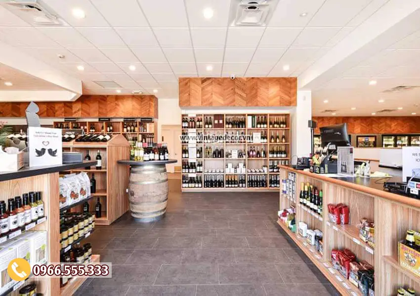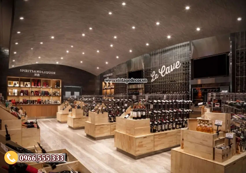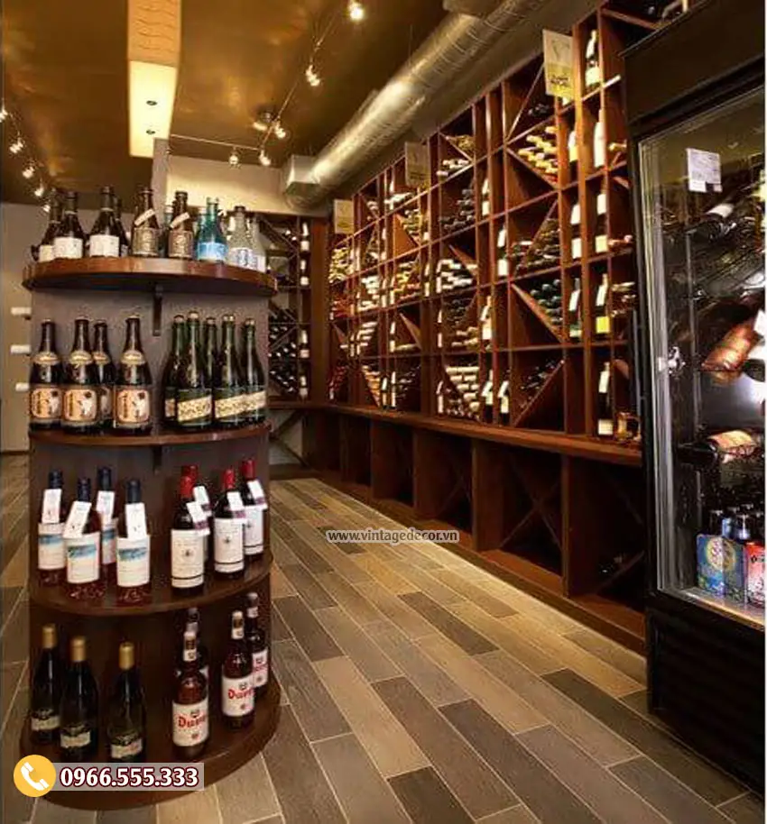 Thiết kế cửa hàng rượu vang/showroom rượu vang của Vintage Decor: Sự kết hợp hoàn hảo giữa chất liệu gỗ và phong cách sang trọng