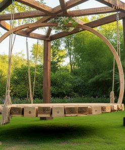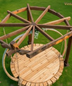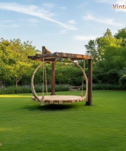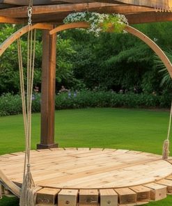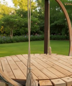 Xích đu gỗ tròn XD1 – Giường treo thư giãn cho sân vườn
